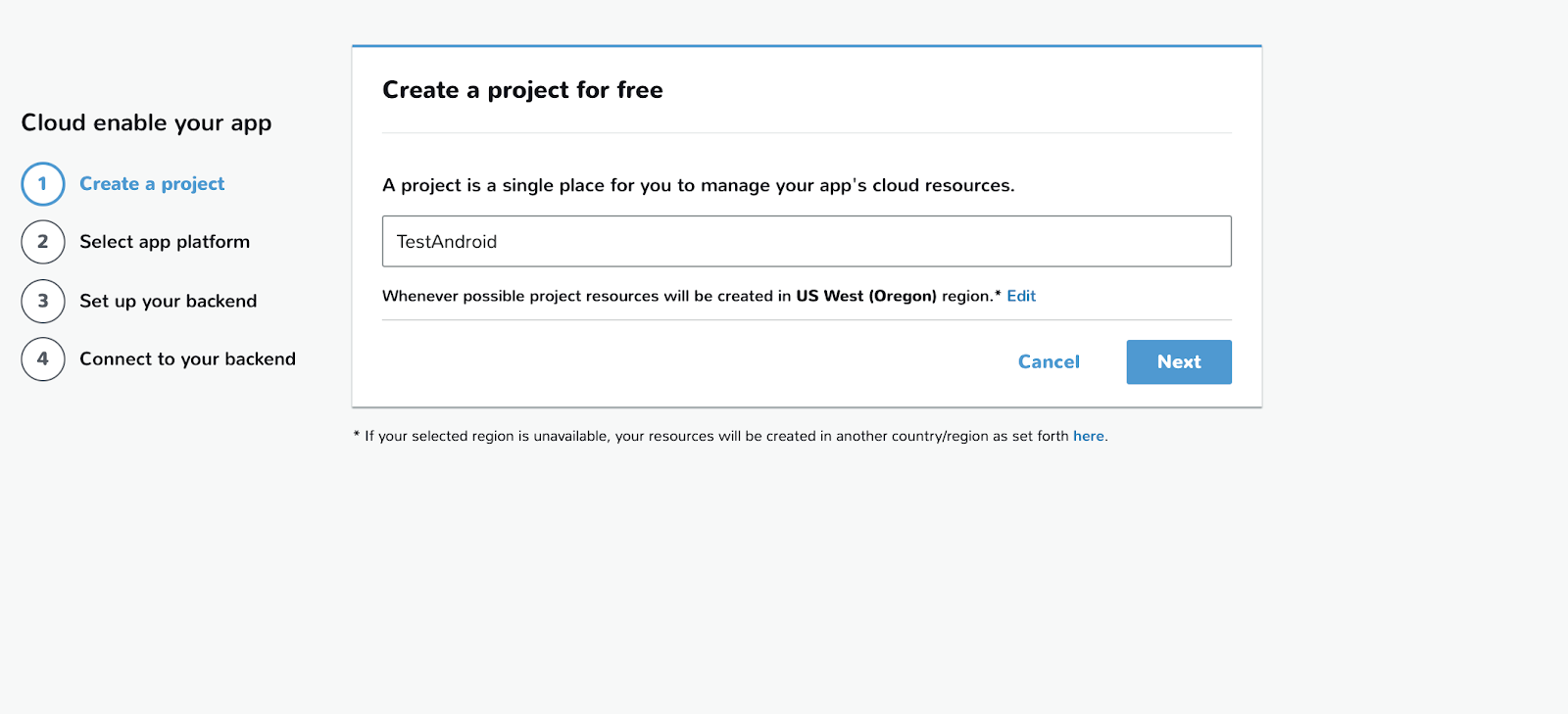 Region을 잘 살펴보시고 project의 이름을 추가합니다.