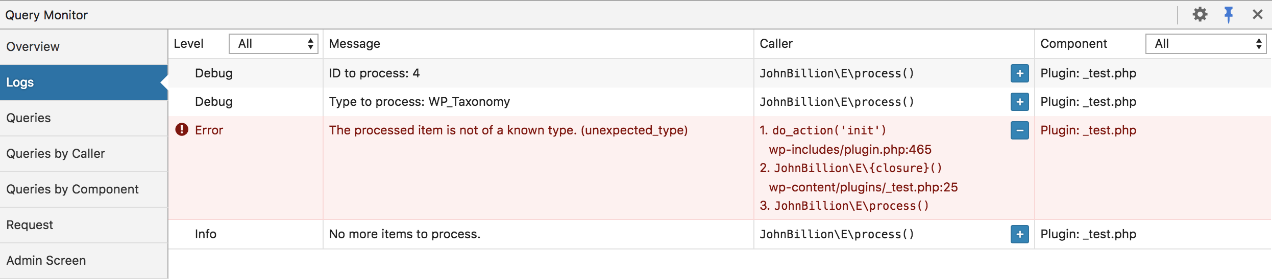 사용된 모든 DB 쿼리 정보를 보여줍니다. 코어, 플러그인 등 발생 위치와 쿼리가 실행시 소요된 시간등의 정보를 모두 출력 합니다.