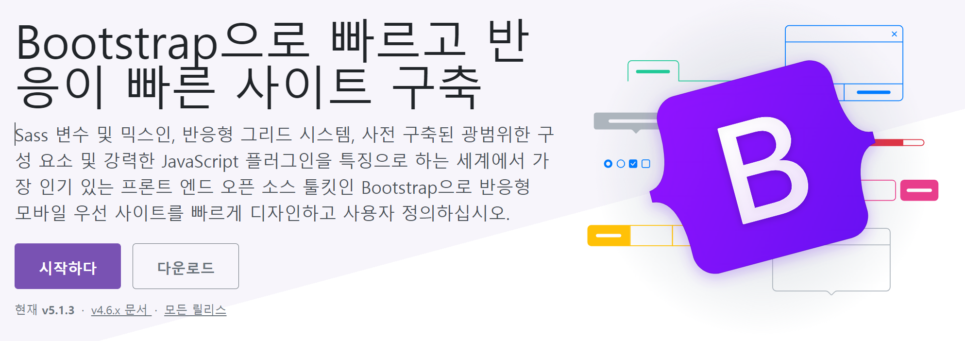 Bootstrap은 세계적으로 반응형 웹 사이트 구축할때 사용되는 가장 인기 있는 프레임워크입니다. 필수 공식 테마에서 웹 사이트 템플릿을 받아서 자유롭게 커스터마이징 하신다면 빠르게 웹 사이트를 제작하실 수 있습니다. 웹 페이지를 구성함에 있어 필요한 아이콘, 목록, 메뉴, 이미지 등등 다양한 요소들이 CSS와 Javascript로 제작되어 있어 폭발적인 인기를 얻고 있습니다.