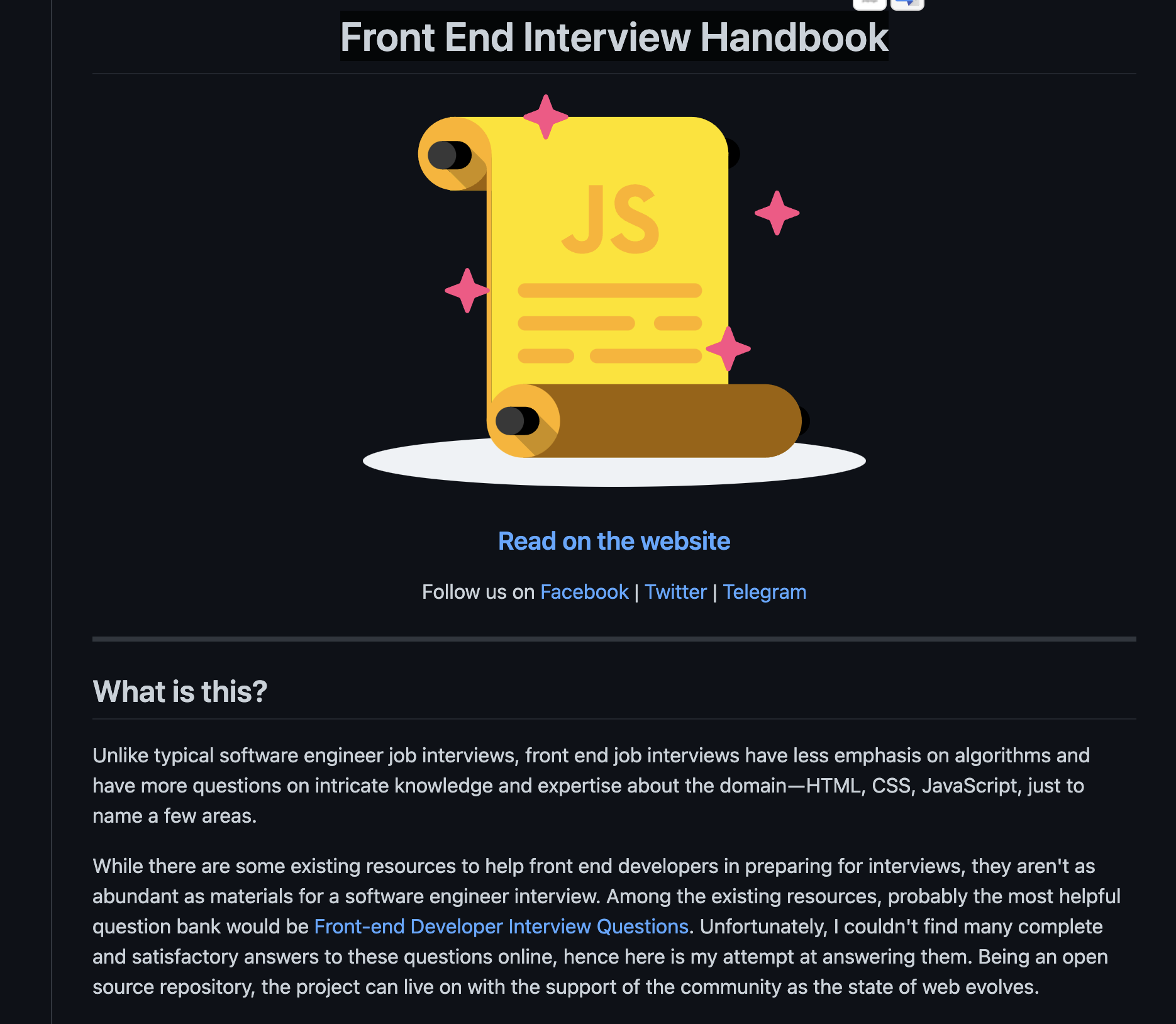GitHub - yangshun/front-end-interview-handbook: ⚡️ Front End interview preparation materials for busy engineers