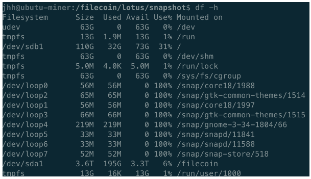 sudo mount /dev/sda1 /filecoin(위 파티션을 /filecoin 디렉토리로 마운트)